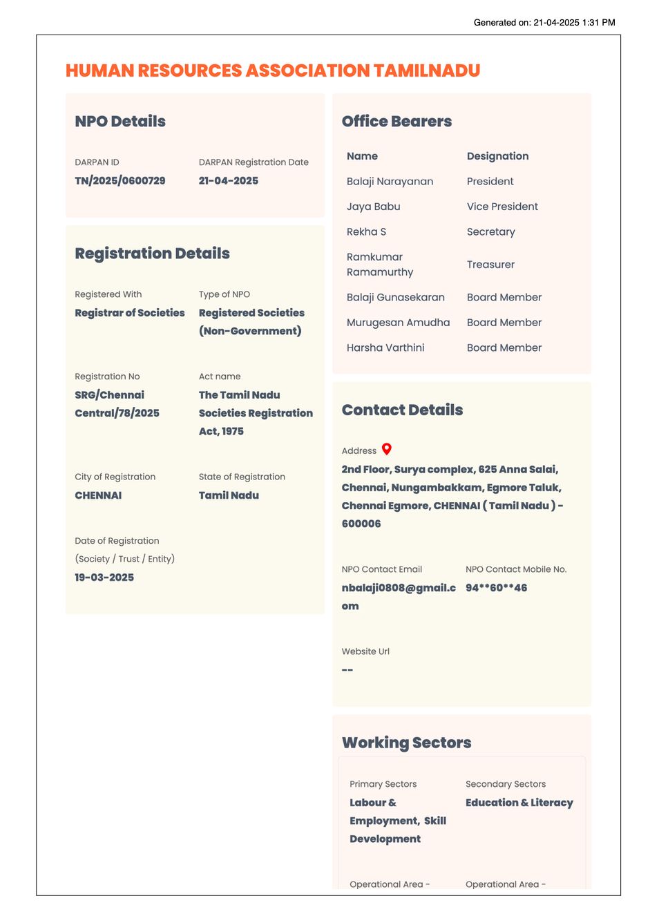 NPO DARPAN Registration